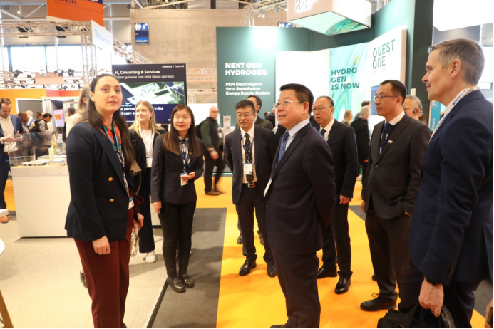 展會(huì)期間,中船集團(tuán)舉辦了電解水制氫設(shè)備、超高溫大型工業(yè)熱泵、智能裝備解決方案等30余場(chǎng)專題推介會(huì),發(fā)布了全球單體最大3000立方電解水制氫設(shè)備,與德國(guó)、瑞典兩家客戶簽約電解水制氫項(xiàng)目合作協(xié)議,與全球眾多客戶進(jìn)行了技術(shù)與產(chǎn)品交流,深入推進(jìn)國(guó)際市場(chǎng)營(yíng)銷(xiāo),進(jìn)一步提升了中船集團(tuán)新興產(chǎn)業(yè)的國(guó)際影響力。此外,中船集團(tuán)還組織相關(guān)成員單位赴德國(guó)、法國(guó)等地,與林德、德希尼布和施耐德等全球知名跨國(guó)企業(yè)進(jìn)行了推介交流與合作洽談,進(jìn)一步鞏固合作關(guān)系,為后續(xù)深化合作奠定基礎(chǔ)。同時(shí),組織與中國(guó)國(guó)機(jī)集團(tuán)、國(guó)家能源集團(tuán)等中國(guó)企業(yè),就展覽展會(huì)、品牌宣傳、國(guó)際項(xiàng)目合作等方面進(jìn)行交流,攜手拓展國(guó)際市場(chǎng)。