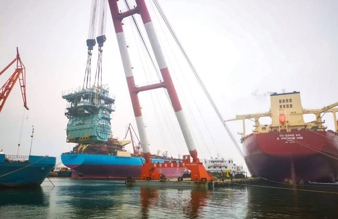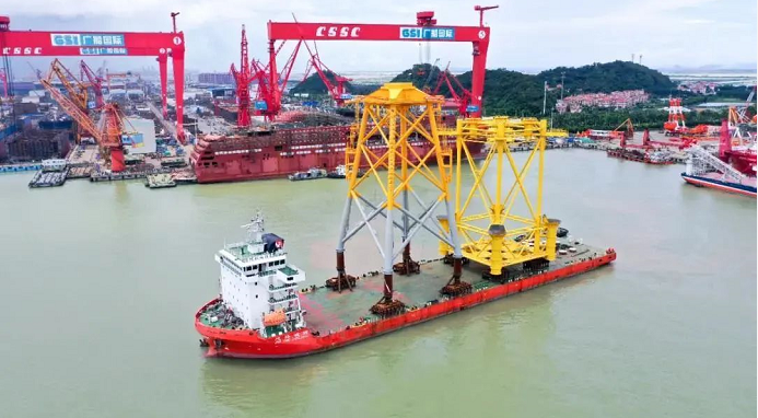 日前,由中國船舶集團旗下廣船國際承建的廣東陽江南鵬島300兆瓦海上風電項目首套導管架及輔助平臺順利交運。這是廣船國際承建并交運的首批首個風電導管架,也是目前國內(nèi)最大的風電導管架,標志著廣船國際在風電業(yè)務領域實現(xiàn)了經(jīng)營、生產(chǎn)、交付全環(huán)節(jié)突破,對后續(xù)承接風電項目業(yè)務、拓展風電市場具有重要意義。