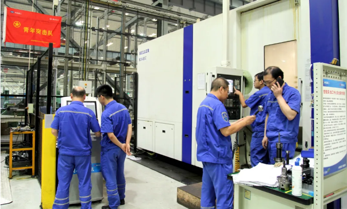 凌晨三點的中國船舶集團(tuán)旗下重慶紅江聯(lián)合廠房,室外,三伏天近40℃的高溫帶來的酷熱并沒有因入夜而降下來;室內(nèi),機床轟響燈火通明,一號車間最先進(jìn)的三臺臥式加工中心開足馬力全速運轉(zhuǎn)。