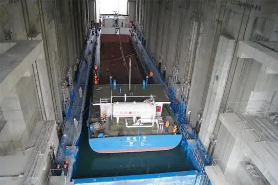 而在上述水電站過船設(shè)施工程建設(shè)中,也出現(xiàn)了中國船舶集團(tuán)旗下院所、船廠、配套企業(yè)等相關(guān)單位的身影。烏江構(gòu)皮灘水電站通航工程被視為貴州融入長江、通江達(dá)海的關(guān)鍵工程。該工程線路總長2306米,概算總投資29.51億元,設(shè)計(jì)通航標(biāo)準(zhǔn)為四級航道,最高通航水頭達(dá)199米,是世界上通航水頭最高、水位變幅最大的通航工程。