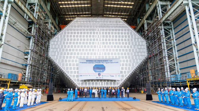 日前,全球最大B型菱形液貨艙在江南造船完工,將被用于世界首制99000立方米超大型液化乙烷運(yùn)輸船(VLEC)。江南造船自主研發(fā)的B型艙 若配置不同的艙體材料和絕緣系統(tǒng) ,可適用于裝載不同溫度的液化氣貨品。