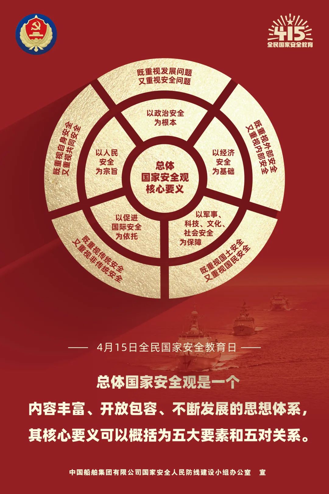 黨的十九屆六中全會(huì)指出,總體國(guó)家安全觀涵蓋政治、軍事、國(guó)土、經(jīng)濟(jì)、文化、社會(huì)、科技、網(wǎng)絡(luò)、生態(tài)、資源、核、海外利益、太空、深海、極地、生物等諸多領(lǐng)域,要求堅(jiān)定維護(hù)國(guó)家政權(quán)安全、制度安全、意識(shí)形態(tài)安全,加強(qiáng)國(guó)家安全宣傳教育和全民國(guó)防教育,鞏固國(guó)家安全人民防線(xiàn)。