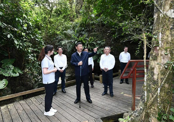 11日下午,習(xí)近平總書(shū)記到海南島中南部的五指山市考察調(diào)研。海南熱帶雨林國(guó)家公園是我國(guó)首批5個(gè)國(guó)家公園之一。習(xí)近平總書(shū)記深入五指山片區(qū),沿木棧道步行察看公園生態(tài)環(huán)境,不時(shí)停下腳步,詢(xún)問(wèn)樹(shù)木生長(zhǎng)、水源涵養(yǎng)、動(dòng)植物資源保護(hù)等情況。