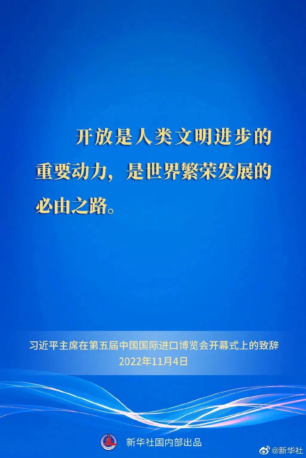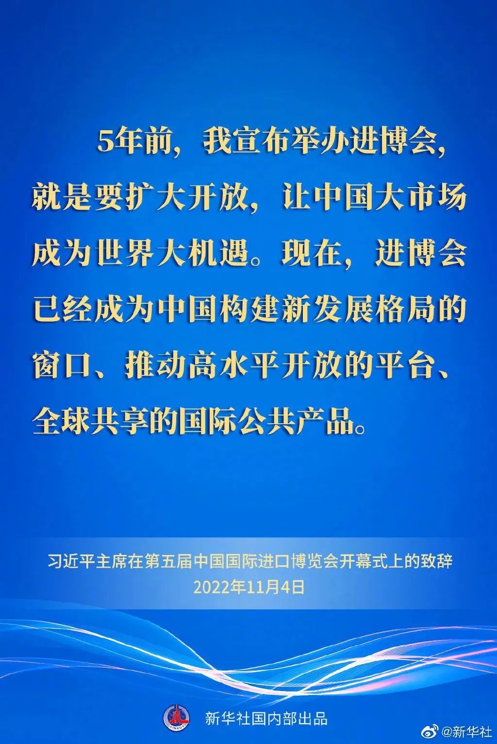 11月4日晚,國家主席習近平以視頻方式出席在上海舉行的第五屆中國國際進口博覽會開幕式并發(fā)表題為《共創(chuàng)開放繁榮的美好未來》的致辭。