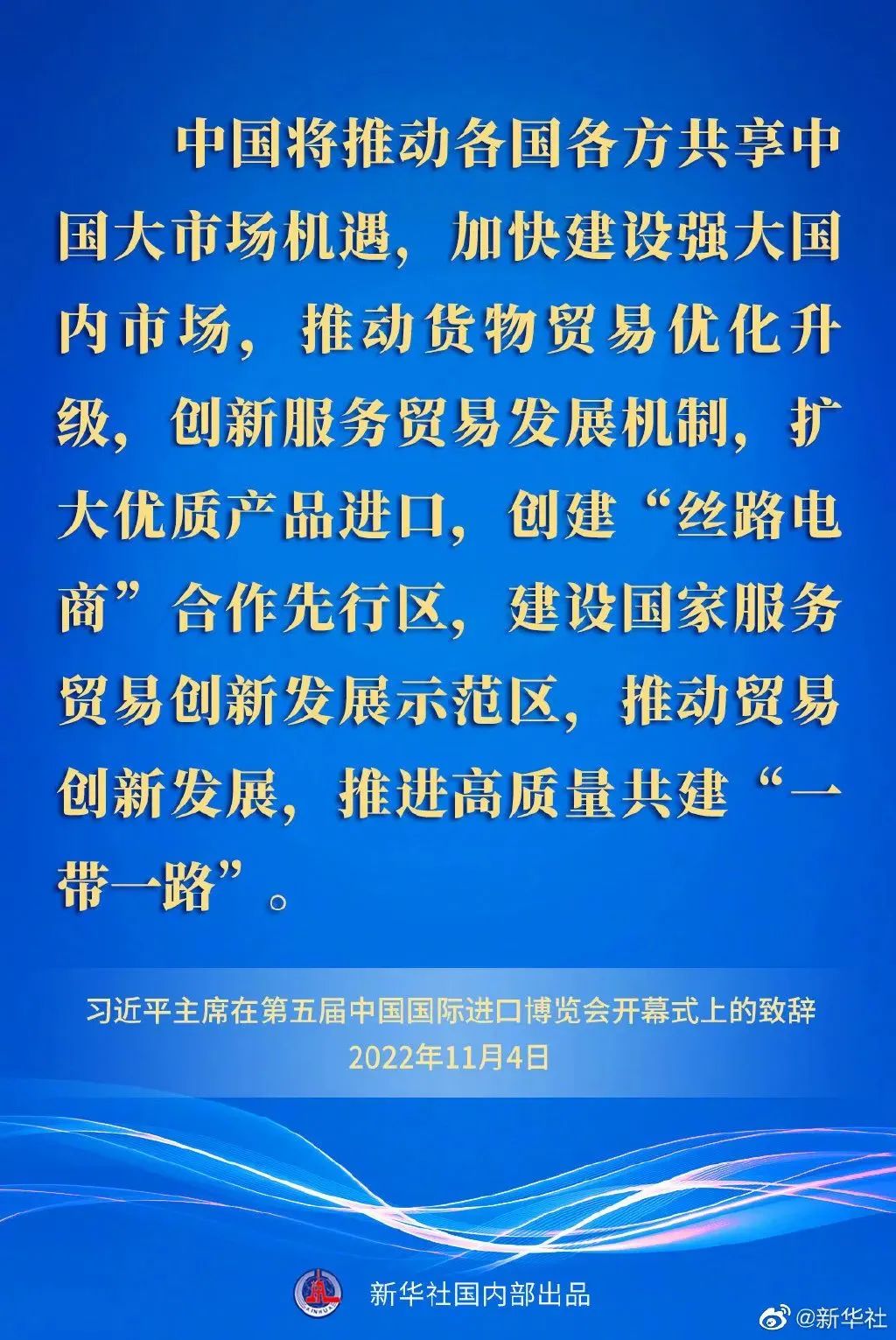 ——中國將推動各國各方共享中國大市場機遇,加快建設強大國內市場,推動貨物貿易優(yōu)化升級,創(chuàng)新服務貿易發(fā)展機制,擴大優(yōu)質產品進口,創(chuàng)建“絲路電商”合作先行區(qū),建設國家服務貿易創(chuàng)新發(fā)展示范區(qū),推動貿易創(chuàng)新發(fā)展,推進高質量共建“一帶一路”。