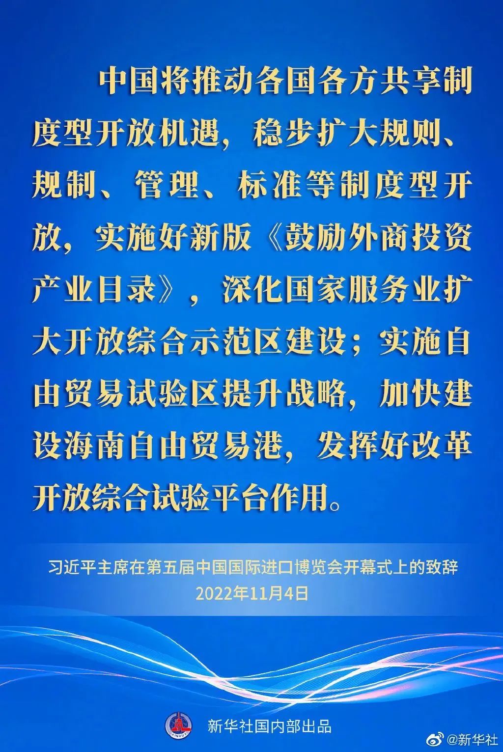 ——中國將推動各國各方共享制度型開放機遇,穩(wěn)步擴大規(guī)則、規(guī)制、管理、標準等制度型開放,實施好新版《鼓勵外商投資產業(yè)目錄》,深化國家服務業(yè)擴大開放綜合示范區(qū)建設;實施自由貿易試驗區(qū)提升戰(zhàn)略,加快建設海南自由貿易港,發(fā)揮好改革開放綜合試驗平臺作用。