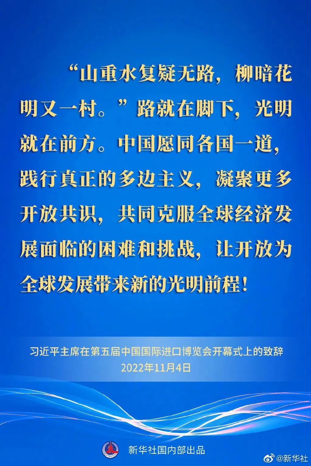 習近平最后強調,路就在腳下,光明就在前方。中國愿同各國一道,踐行真正的多邊主義,凝聚更多開放共識,共同克服全球經濟發(fā)展面臨的困難和挑戰(zhàn),讓開放為全球發(fā)展帶來新的光明前程!