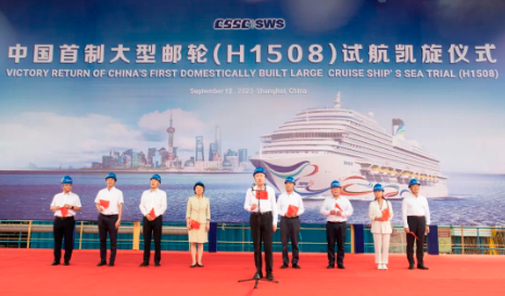 現(xiàn)場舉行了簡短的歡迎儀式。溫剛宣布中國首制大型郵輪完工試航所有驗證項目全部達標,試航任務圓滿完成。