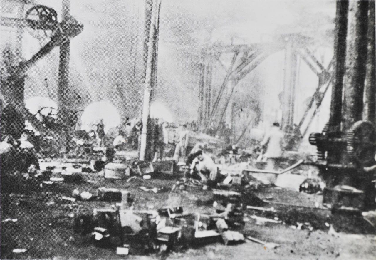 1949年5月上海,雖然江南造船所經(jīng)歷了英勇的護廠斗爭,但此時的船塢、廠房、設(shè)備,均已遭受到嚴(yán)重的破壞。