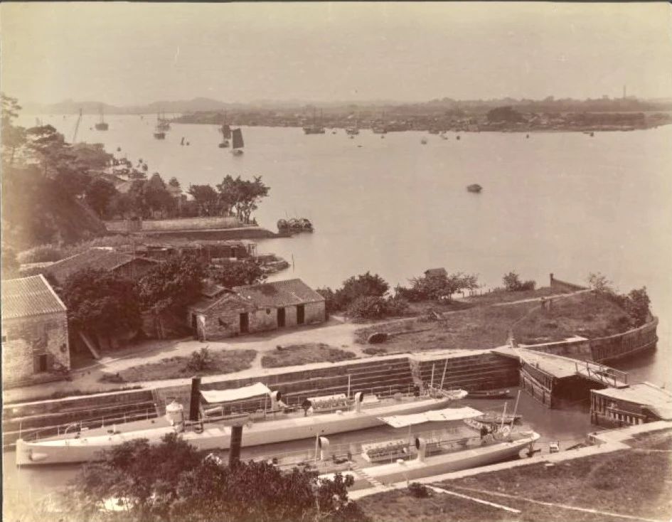 19世紀(jì)廣州19世紀(jì)的柯拜船塢和錄順船塢。
