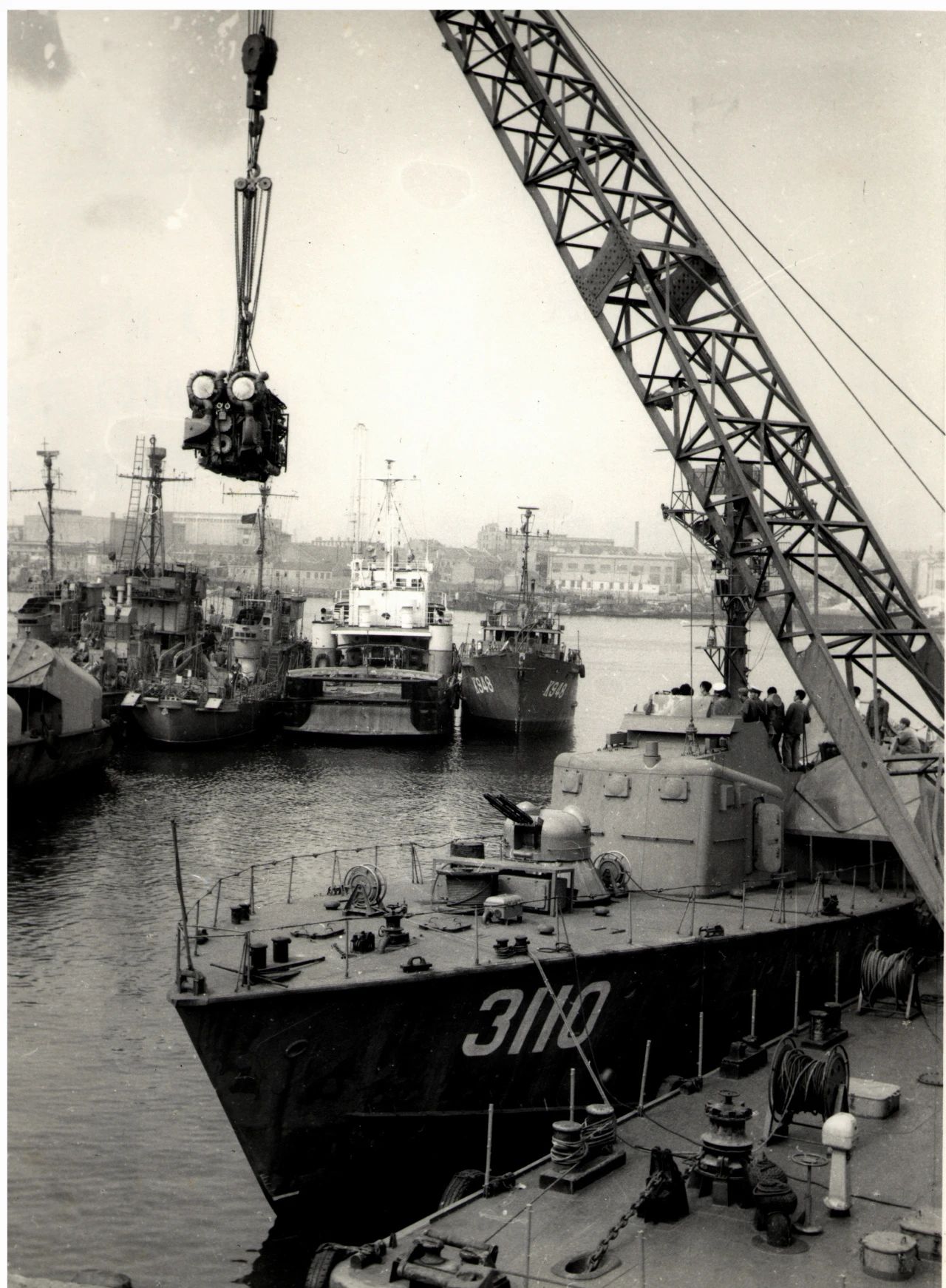 1950年廣州1950年,萬山海戰(zhàn)功臣“前進號”炮艇在工廠下水。