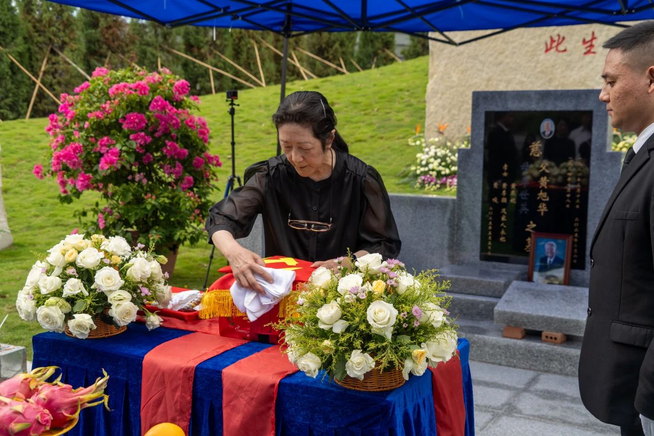 親屬代表擦拭墓碑后,在禮賓人員的引導(dǎo)下將黃旭華院士的骨灰安放進(jìn)墓穴。人們向黃旭華院士墓碑行三鞠躬禮,并敬獻(xiàn)鮮花,以簡約而莊重的儀式,送別國之脊梁。