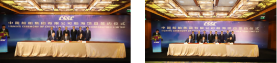 ????主要簽約項目包括:中國船舶集團所屬重慶川東船舶重工有限責任公司與中遠海運(上海)有限公司1.38萬噸不銹鋼化學品船項目;中國船舶集團所屬大連船舶重工集團有限公司與招商輪船VLCC項目;中國船舶集團所屬上海外高橋造船有限公司與工銀租賃21萬噸散貨船項目、外高橋造船與EPS公司20.9萬噸雙燃料散貨船項目;中國船舶集團所屬江南造船(集團)有限責任公司與太平洋氣體公司VLEC項目、江南造船與 SINOGAS86000立方米VLGC項目、江南造船與UECC公司3600車汽車滾裝船項目、江南造船與派格達克公司22000方乙烯船項目;中國船舶集團所屬廣船國際有限公司與斯坦納公司5萬噸甲醇雙燃料油船項目、廣船國際與EPS公司LNG雙燃料蘇伊士油船項目、中國船舶集團所屬滬東中華造船(集團)有限公司與MOL18600立方LNG加注船項目;中國船舶集團所屬武船集團青島北海船舶重工有限責任公司與中國船舶集團所屬中船租賃21萬噸散貨船項目、中國船舶集團所屬中船澄西船舶修造有限公司與國銀租賃85000噸散貨船項目、重慶川東船舶重工與重慶冠達世紀游輪650客游輪項目;中國船舶租賃與 Golar LNG 船舶改裝融資租賃項目、中國船舶租賃與SINOGAS86000立方米VLGC融資租賃項目;中船租賃與山東海運21萬噸散貨船融資租賃項目、中船租賃與Navig 8 成品油船聯(lián)合投資協(xié)議、中船租賃與新加坡星展銀行VLCC融資協(xié)議。