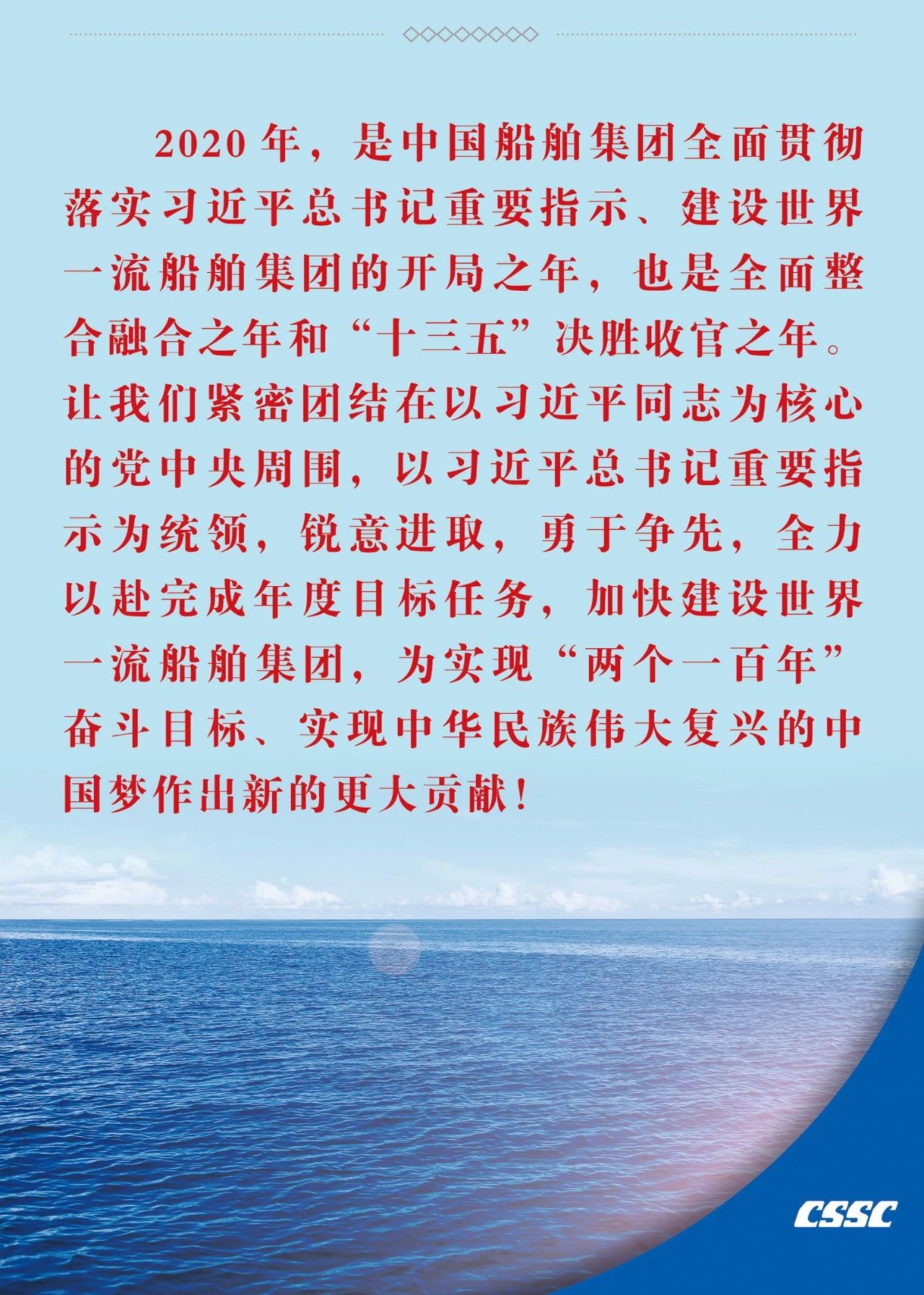 ??1月19日,在中國船舶集團有限公司2020年度工作會議上,中國船舶集團黨組書記、董事長雷凡培作了題為《以習近平總書記重要指示為統(tǒng)領 奮力開啟建設世界一流船舶集團新征程》的工作報告。