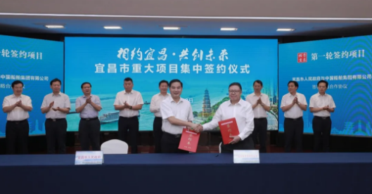7月28日,中國船舶集團(tuán)有限公司黨組成員、副總經(jīng)理錢建平代表中國船舶集團(tuán)與宜昌市政府簽訂了《中國船舶(宜昌)海洋裝備科技園項(xiàng)目框架合作協(xié)議》。宜昌市委書記周霽、市長張家勝參加簽約活動。