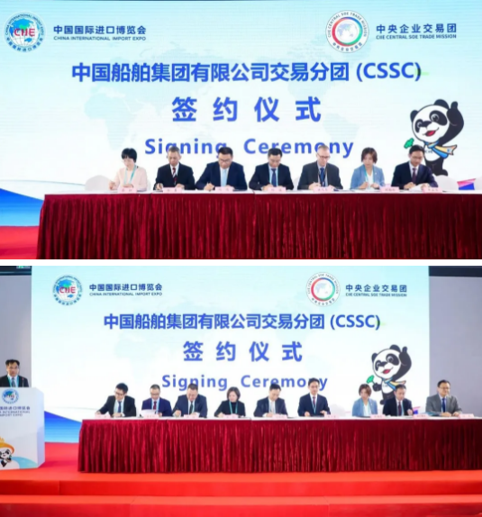 簽約儀式上,中國(guó)船舶集團(tuán)所屬?gòu)V船國(guó)際股份有限公司、中船黃埔文沖船舶有限公司、滬東重機(jī)有限公司、陜西柴油機(jī)重工有限公司、中國(guó)船舶物資公司、中國(guó)船舶貿(mào)易有限公司、上海外高橋造船有限公司等7家企業(yè)與西門(mén)子、ABB、康士伯、瓦錫蘭、日本大發(fā)、韓國(guó)現(xiàn)代等19家合作商,共進(jìn)行了23個(gè)項(xiàng)目簽約,簽約總金額共計(jì)1.14億美元,涉及軸帶發(fā)電機(jī)、主發(fā)電機(jī)、主柴油機(jī)、閥門(mén)遙控系統(tǒng)、柴油機(jī)零部件、曲軸等產(chǎn)品。另外,中國(guó)船舶集團(tuán)參加本屆進(jìn)博會(huì)專(zhuān)業(yè)觀眾觀展活動(dòng)的人數(shù)也較往年有明顯提升。