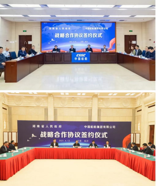 4月13日,中國(guó)船舶集團(tuán)有限公司與湖南省人民政府通過“云簽約”方式簽署戰(zhàn)略合作協(xié)議。中國(guó)船舶集團(tuán)黨組書記、董事長(zhǎng)雷凡培,黨組副書記、總經(jīng)理?xiàng)罱鸪桑h組成員、副總經(jīng)理盛紀(jì)綱,湖南省委書記、省人大常委會(huì)主任許達(dá)哲,省委常委、省委秘書長(zhǎng)張劍飛,省委常委、省國(guó)資委黨委書記姚來(lái)英出席簽約儀式。中國(guó)船舶集團(tuán)黨組成員、副總經(jīng)理錢建平,湖南省人民政府副省長(zhǎng)陳飛分別代表雙方在協(xié)議上簽字。簽約前,雙方圍繞共同服務(wù)國(guó)家戰(zhàn)略、深入推進(jìn)雙方戰(zhàn)略合作進(jìn)行了交流。