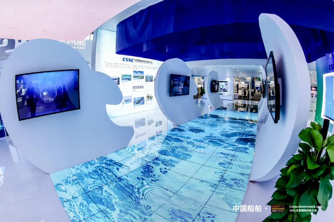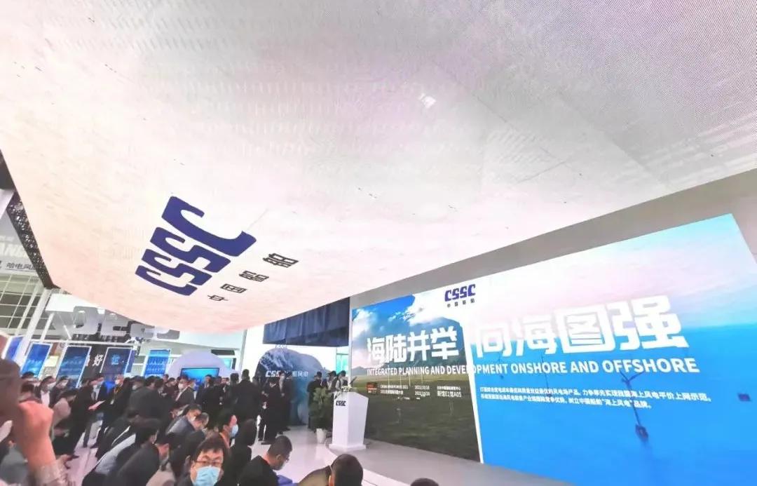 此次展會上,中國船舶集團以“創(chuàng)新引領(lǐng)、綠色發(fā)展強使命,海陸并舉、向海圖強顯擔當”為主題,在900平方米的歷屆風能展最大展臺上,按照建設(shè)開發(fā)、整機制造、關(guān)鍵核心部件和產(chǎn)業(yè)配套四個版塊分區(qū)展出。