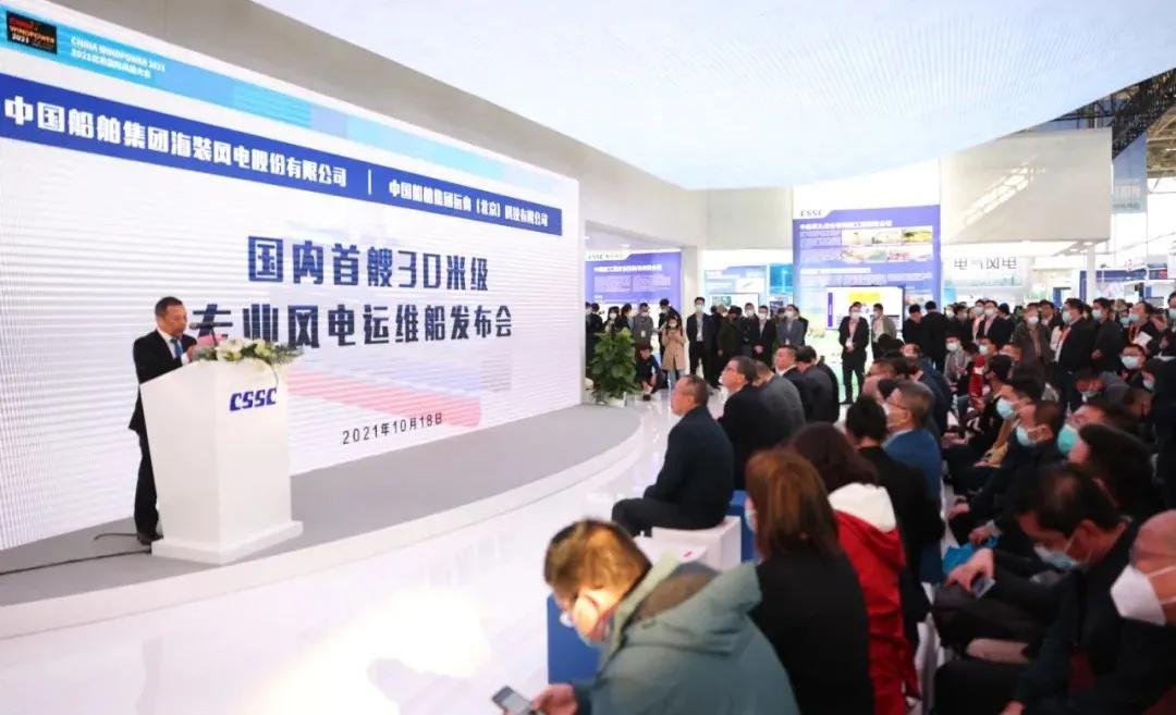 在風能展上,中國海裝與遠舟科技聯(lián)合設(shè)計制造的國內(nèi)首艘30米級專業(yè)風電運維船發(fā)布,最大裝載38噸,可抗浪高4米,可搭乘12名運維人員和6名船員,具有高強度、輕重量的結(jié)構(gòu)特點和優(yōu)良的安全性、快速性、防腐性、耐波性等,將于今年正式投運。