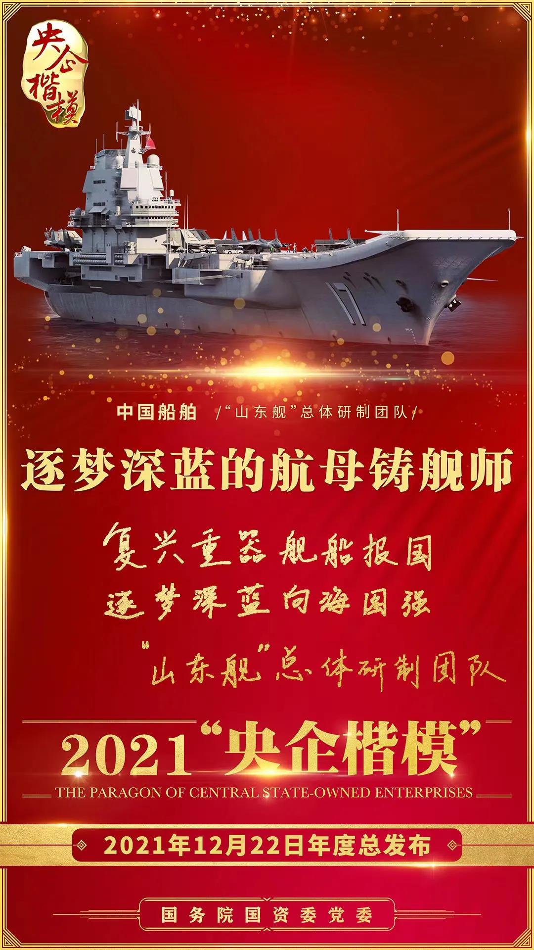 12月22日,國務(wù)院國資委黨委舉行2021年第二批“央企楷?!卑l(fā)布暨年度總發(fā)布儀式,中國船舶“山東艦”總體研制團(tuán)隊榮獲2021年“央企楷?!睒s譽(yù)稱號。繼“奮斗者”號萬米載人潛水器研發(fā)團(tuán)隊獲評2020年“央企楷模”榮譽(yù)稱號后,中國船舶集團(tuán)再獲此殊榮。
