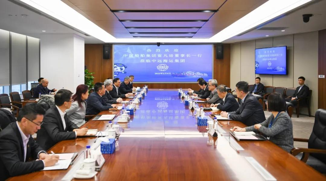 2月9日,中國船舶集團有限公司黨組書記、董事長雷凡培,黨組副書記、總經(jīng)理楊金成一行赴中遠(yuǎn)海運大廈拜會中國遠(yuǎn)洋海運集團有限公司黨組書記、董事長萬敏,黨組副書記、總經(jīng)理付剛峰。雙方互賀壬寅虎年新春,圍繞深入貫徹落實國家重大戰(zhàn)略,就進一步加強綠色燃料技術(shù)研發(fā)應(yīng)用、船舶與航運業(yè)全產(chǎn)業(yè)鏈構(gòu)建等領(lǐng)域的交流合作,攜手推動我國航運業(yè)和造船業(yè)高質(zhì)量發(fā)展進行了深入探討并達(dá)成廣泛共識。中國船舶集團黨組成員、副總經(jīng)理孫偉、盛紀(jì)綱,中遠(yuǎn)海運集團黨組成員、副總經(jīng)理、總會計師孫云飛參加會談。