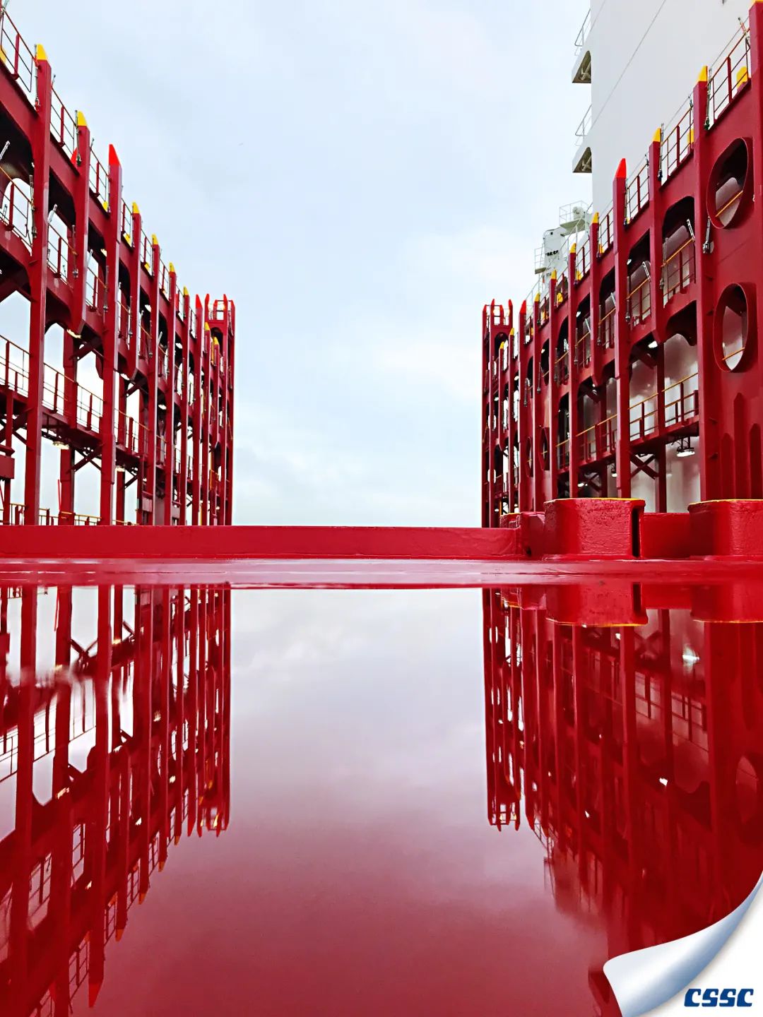 由七〇八所研發(fā)設(shè)計的20000TEU超大型集裝箱船試航期間,紅色的船體與倒影融為一體,充滿了夢幻色彩,寓意紅色基因在實現(xiàn)海洋強國夢的征程中愈發(fā)光彩奪目。