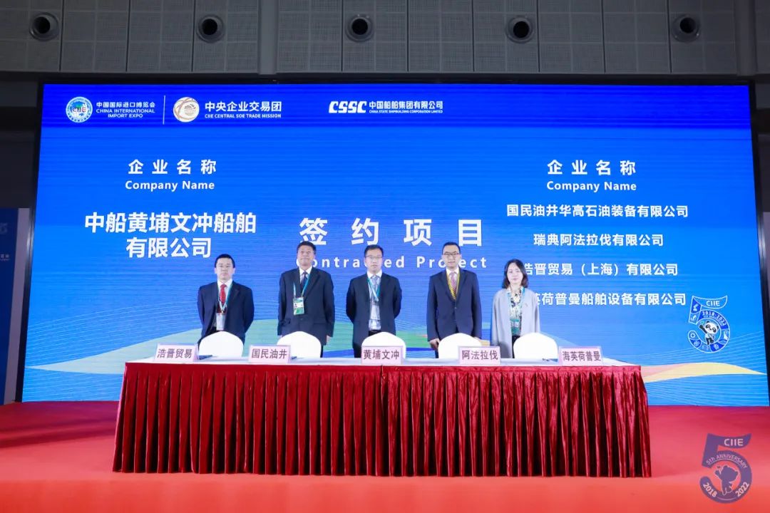 第五屆進(jìn)博會(huì)期間,中國(guó)船舶集團(tuán)旗下8家企業(yè)與18家國(guó)際合作伙伴先后進(jìn)行21個(gè)項(xiàng)目的集中簽約,累計(jì)總金額達(dá)4.5億美元,同比增長(zhǎng)205.5%。項(xiàng)目涉及柴油機(jī)組、發(fā)電機(jī)組、船用吊機(jī)、通導(dǎo)系統(tǒng)、電力推進(jìn)系統(tǒng)、數(shù)字化網(wǎng)絡(luò)設(shè)備、LNG供氣系統(tǒng)、殷瓦鋼、再液化裝置等船舶建造領(lǐng)域的各類(lèi)重要配套設(shè)備,為國(guó)際交易市場(chǎng)和全球供應(yīng)鏈的日益繁榮貢獻(xiàn)中國(guó)船舶力量。