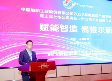 12月9日,中國(guó)船舶工業(yè)股份有限公司2022年度船海產(chǎn)融發(fā)展高峰論壇暨上海上市公司協(xié)會(huì)上市公司之家揭牌儀式在上海舉行。論壇旨在搭建產(chǎn)業(yè)與金融交流合作平臺(tái),聚合船舶工業(yè)產(chǎn)業(yè)頭部資源,洞悉行業(yè)賽道一線信息,深化金融助力實(shí)體經(jīng)濟(jì)發(fā)展,推動(dòng)行業(yè)創(chuàng)新驅(qū)動(dòng)。中國(guó)船舶集團(tuán)黨組成員、總會(huì)計(jì)師賈海英,上海上市公司協(xié)會(huì)會(huì)長(zhǎng)、上港集團(tuán)黨委書記、董事長(zhǎng)顧金山出席論壇并致辭。中國(guó)船舶集團(tuán)黨組成員、副總經(jīng)理,中國(guó)船舶股份董事長(zhǎng)盛紀(jì)綱發(fā)表主旨演講。