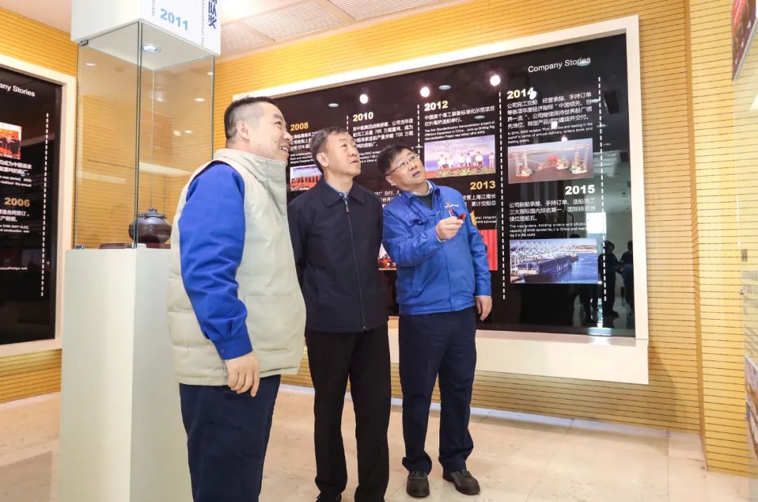 在外高橋造船展廳,溫剛聽取了外高橋造船發(fā)展歷程、戰(zhàn)略定位和主建產(chǎn)品等內(nèi)容的匯報(bào)。在國產(chǎn)大型郵輪首制船建設(shè)現(xiàn)場(chǎng),溫剛聽取了建造進(jìn)度匯報(bào),并安排部署下一步工作。座談會(huì)上,溫剛聽取了外高橋造船高質(zhì)量發(fā)展戰(zhàn)略、生產(chǎn)經(jīng)營情況及黨建重點(diǎn)特色工作的匯報(bào)。