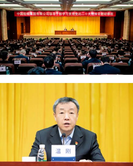 3月6日,中國船舶集團有限公司領(lǐng)導(dǎo)干部學(xué)習(xí)貫徹黨的二十大精神專題研修班正式開班。中國船舶集團黨組書記、董事長溫剛出席開班式并為全體學(xué)員作了題為《全面學(xué)習(xí)全面把握全面落實黨的二十大精神,團結(jié)奮斗加快建設(shè)世界一流船舶集團》的專題講座。集團公司黨組副書記、董事、黨校校長杜剛主持開班式。
