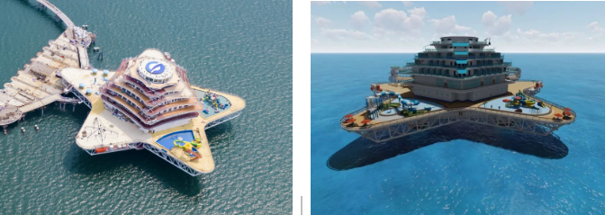 以濱海城市為依托,該方案重點建設(shè)需求旺盛、基礎(chǔ)好、見效快的“海洋文旅+深海養(yǎng)殖+海上風(fēng)電+海洋信息管網(wǎng)”4個要素單元,釋放旅游、養(yǎng)殖、綠色能源耦合效應(yīng)。綜合體采用模塊化設(shè)計、區(qū)域化協(xié)同部署,由濱海向深遠海帶狀輻射,布局建設(shè)游輪游艇群、養(yǎng)殖文旅平臺、深海養(yǎng)殖產(chǎn)業(yè)園、分布式海上風(fēng)電場及智能微電網(wǎng)、深海移動養(yǎng)殖工廠和海洋信息管網(wǎng)等風(fēng)漁文旅結(jié)合項目。以郵輪游艇連接海上設(shè)施,構(gòu)建海上旅游娛樂交通網(wǎng),以中小型郵輪航線實現(xiàn)沿海城市綜合體間串聯(lián),構(gòu)建沿海城市海上旅游觀光帶,同時培育郵輪與康養(yǎng)休閑岸?;尤诤夏J剑蹲?、帶動、滿足多元化潛在消費需求,打造風(fēng)漁文旅等一二三產(chǎn)業(yè)融合新業(yè)態(tài),形成沿海藍色海洋經(jīng)濟帶。