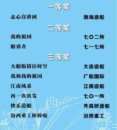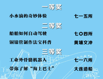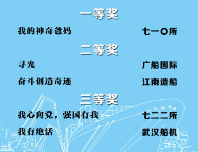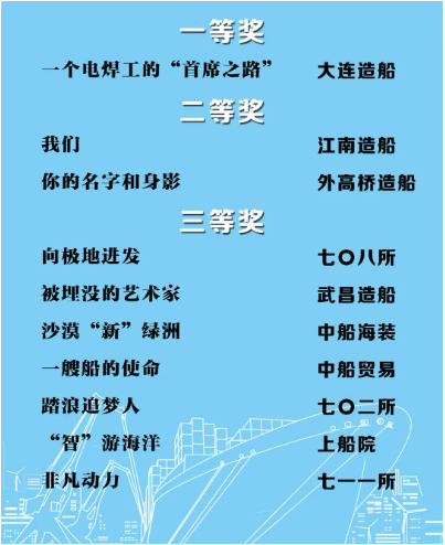 由中國(guó)船舶集團(tuán)黨群工作部指導(dǎo),中國(guó)船舶集團(tuán)新聞宣傳中心/中國(guó)船舶報(bào)社承辦的中國(guó)船舶集團(tuán)第二屆短視頻大賽圓滿落幕。經(jīng)過(guò)前期篩選,網(wǎng)絡(luò)投票,并特邀國(guó)務(wù)院國(guó)資委新聞中心、國(guó)防科工局新聞宣傳中心、中央電視臺(tái)、微博政務(wù)、中國(guó)船舶集團(tuán)黨群工作部專家評(píng)審,大賽最終評(píng)出一等獎(jiǎng)5部,二等獎(jiǎng)10部,三等獎(jiǎng)23部,同時(shí)評(píng)出優(yōu)秀組織獎(jiǎng)單位6家。名單如下,快來(lái)圍觀!