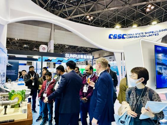 此次參展是集團公司首次以整體形象亮相日本東京國際海事展,以“共筑未來”為參展主題,設(shè)置集團總體區(qū)、低碳航運解決方案區(qū)、低碳環(huán)保配套設(shè)備區(qū)、未來船型區(qū)共4個展示區(qū)域,重點展示了引領(lǐng)行業(yè)發(fā)展的新一代船舶產(chǎn)品、“綠色、智能”的配套設(shè)備,以及面向未來市場需求的船型設(shè)計方案,充分彰顯中國船舶集團的國際化品牌形象和引領(lǐng)國際船舶科技發(fā)展的創(chuàng)新活力。
