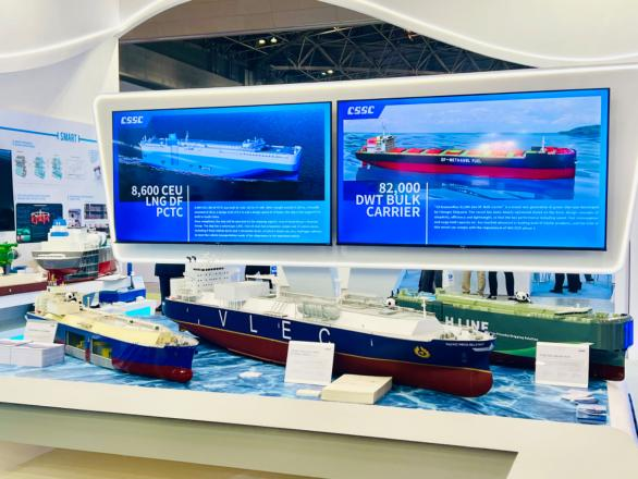 展會期間,國產(chǎn)大型郵輪、17.4萬立方米LNG船、8600車LNG雙燃料PCTC、9.9萬立方米VLEC、WinGD 9X92DF-2.0(-iCER)主機、船用LNG 供氣系統(tǒng)、船用碳捕捉系統(tǒng)、大口徑岸基智能裝卸系統(tǒng)等代表性產(chǎn)品悉數(shù)亮相,獲得海外市場高度關(guān)注。