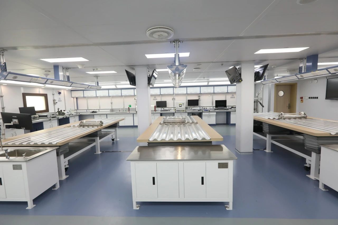 為了解決這一矛盾,研發(fā)團(tuán)隊(duì)從空間利用上想辦法,創(chuàng)新性地采用了固定式與移動式相結(jié)合的方式,實(shí)現(xiàn)了實(shí)驗(yàn)室總面積超過3000平方米。船載實(shí)驗(yàn)室設(shè)計(jì)在滿足固定搭載設(shè)備需求的同時(shí),還為移動搭載設(shè)備預(yù)留位置和接口;具備條件的會議室預(yù)留了實(shí)驗(yàn)室基礎(chǔ)設(shè)施,可根據(jù)需要隨時(shí)升級為通用實(shí)驗(yàn)室;已裝船的儀器設(shè)備設(shè)計(jì)為可拆式,可實(shí)現(xiàn)船岸實(shí)驗(yàn)室共享使用,最大限度發(fā)揮設(shè)備的使用率?!皦粝搿碧柤攘⒆阌诋?dāng)前,還兼顧未來,為功能拓展和升級留下了種種可能。