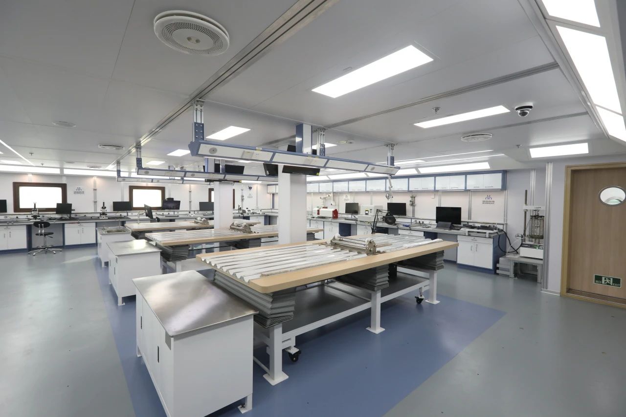 “夢想”號大洋鉆探船建有海洋領(lǐng)域全學(xué)科船載實(shí)驗(yàn)室,涵蓋九大實(shí)驗(yàn)功能,并配置船載巖心自動傳輸存儲系統(tǒng)。