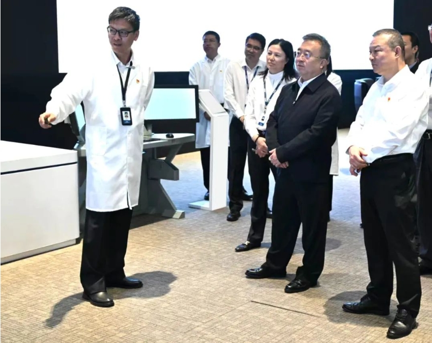 王國強深入科研生產(chǎn)一線,調研了相關實驗室和產(chǎn)品,與首席專家、領軍人才、一線科研人員交流,聽取了二級管理單位負責人關于企業(yè)發(fā)展、科技創(chuàng)新、人才培養(yǎng)、黨的建設、文化建設等情況匯報。