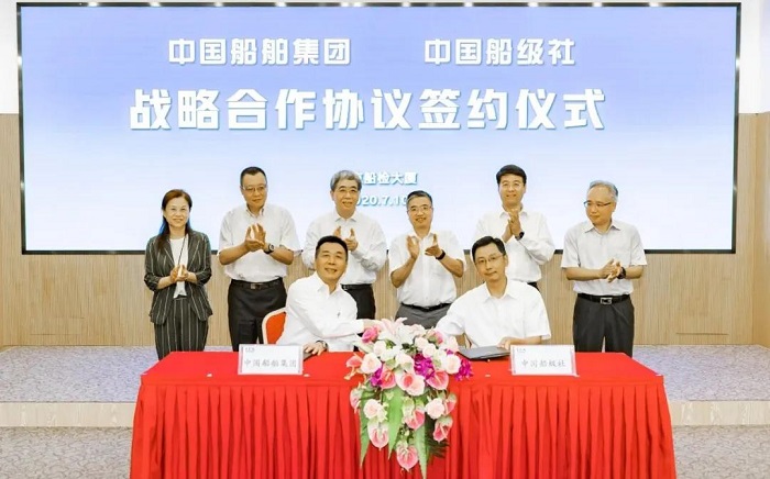 7月10日,中國(guó)船舶集團(tuán)有限公司與中國(guó)船級(jí)社在京簽訂戰(zhàn)略合作協(xié)議。中國(guó)船舶集團(tuán)黨組書(shū)記、董事長(zhǎng)雷凡培,黨組成員、副總經(jīng)理杜剛,中國(guó)船級(jí)社總裁莫鑒輝,副總裁朱愷、范強(qiáng)出席簽約儀式。中國(guó)船舶集團(tuán)黨組成員、副總經(jīng)理孫偉,中國(guó)船級(jí)社副總裁孫峰分別代表雙方在協(xié)議上簽字。簽約后,雙方圍繞共同服務(wù)國(guó)家戰(zhàn)略,就進(jìn)一步加強(qiáng)交流合作、促進(jìn)優(yōu)勢(shì)互補(bǔ)、實(shí)現(xiàn)共贏發(fā)展進(jìn)行了深入交流。