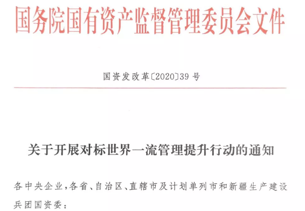 6月13日,國資委正式印發(fā)《關(guān)于開展對標世界一流管理提升行動的通知》(以下簡稱《通知》),對國有重點企業(yè)開展對標提升行動作出部署安排。