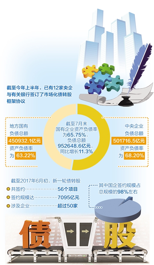 數(shù)據(jù)顯示,截至2017年6月初,我國(guó)新一輪債轉(zhuǎn)股共簽約56個(gè)項(xiàng)目,簽約規(guī)模達(dá)7095億元,涉及企業(yè)超過(guò)50家,其中以國(guó)企為主,簽約規(guī)模占總規(guī)模的98%左右。
