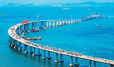 港珠澳大橋主體工程全線(xiàn)貫通,是中國(guó)橋梁屹立世界“橋梁之巔”的縮影。世界最長(zhǎng)跨海大橋、跨度最大的公鐵兩用橋、首座公鐵兩用跨海大橋……近年來(lái),中國(guó)橋梁界為世界橋梁創(chuàng)造了眾多的“世界第一”。數(shù)據(jù)顯示,目前世界排名前10位的跨海長(zhǎng)橋中,中國(guó)占據(jù)6座。而在建造技術(shù)上,中國(guó)已擁有千米級(jí)斜拉橋設(shè)計(jì)施工成套技術(shù)、跨海特大跨徑鋼箱梁懸索橋關(guān)鍵技術(shù)等多項(xiàng)尖端技術(shù)。