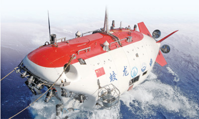2012年6月15日,蛟龍?zhí)栞d人潛水器進(jìn)行7000米級(jí)海試首次下潛試驗(yàn)。(人民視覺(jué))