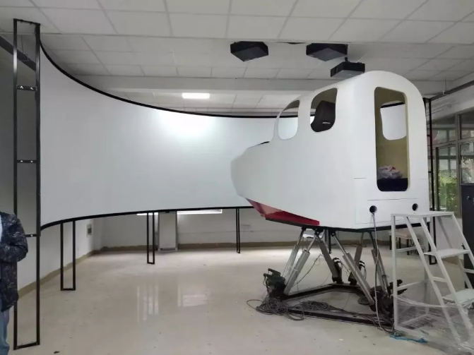 ????該平臺主要由地效翼船駕駛艙、六自由度運(yùn)動(dòng)平臺、工控機(jī)、激光高清工程投影機(jī)、180°金屬環(huán)形硬幕、圖像處理器、飛行仿真軟件等組成。駕駛座艙1:1復(fù)制交通運(yùn)輸部指定的唯一教具——翔州1型地效翼船,在環(huán)境上保持了與真實(shí)地效翼船的高度一致,180°金屬環(huán)形硬幕最大程度再現(xiàn)全球各大水域的真實(shí)場景,而六自由度運(yùn)動(dòng)平臺真實(shí)實(shí)現(xiàn)了地效翼船升沉、俯仰、滾轉(zhuǎn)等動(dòng)作,給學(xué)員身臨其境的地效翼船駕控感受。