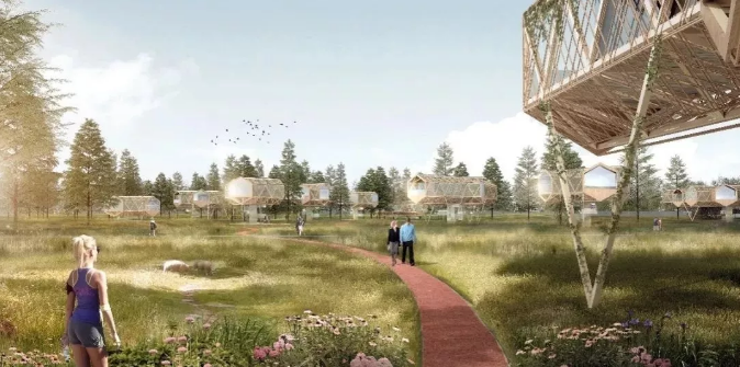 ????“棠上人家”方案以“浮木”為概念,旨在創(chuàng)造一種漂浮于自然之上、如樹木般生長的建筑形態(tài)。設計以鄉(xiāng)村建設的天然環(huán)境保護和不規(guī)則點狀供地特點為切入點,提出立足鄉(xiāng)村、面向未來的輕型建造策略,對結構選型、空間組合、表皮構造等方面進行研究,打造綠色生態(tài)的新型鄉(xiāng)村建筑形態(tài)。
