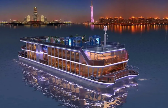 ????280客位珠江夜游船總長38.8米,型寬12.0米,型深3.2米,航速10.0節(jié),是粵港澳大灣區(qū)首艘入級商業(yè)運營新能源客船,外觀設(shè)計新穎獨特,純電池動力突顯低噪音、低排放、綠色環(huán)保的優(yōu)勢,對于推動粵港澳大灣區(qū)旅游和交通產(chǎn)業(yè)的綠色發(fā)展具有重要意義。