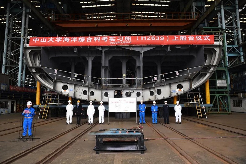 ????3月30日,由中國(guó)船舶集團(tuán)七〇八所設(shè)計(jì)、江南造船建造的中山大學(xué)海洋綜合科考實(shí)習(xí)船順利上船臺(tái)。該型船是國(guó)內(nèi)目前最大的海洋綜合科考船,總長(zhǎng)約114.3米,排水量約6800噸,續(xù)航力15000海里,入級(jí)中國(guó)船級(jí)社(CCS);具備B3冰級(jí)加強(qiáng),采用直流母排+蓄電池儲(chǔ)能技術(shù),配有齒輪全回轉(zhuǎn)主推進(jìn)裝置、輪緣永磁側(cè)推裝置,具備DP1動(dòng)力定位能力,是一艘配置高、能力強(qiáng)、創(chuàng)新技術(shù)高度集成的新一代大型海洋綜合科考船。