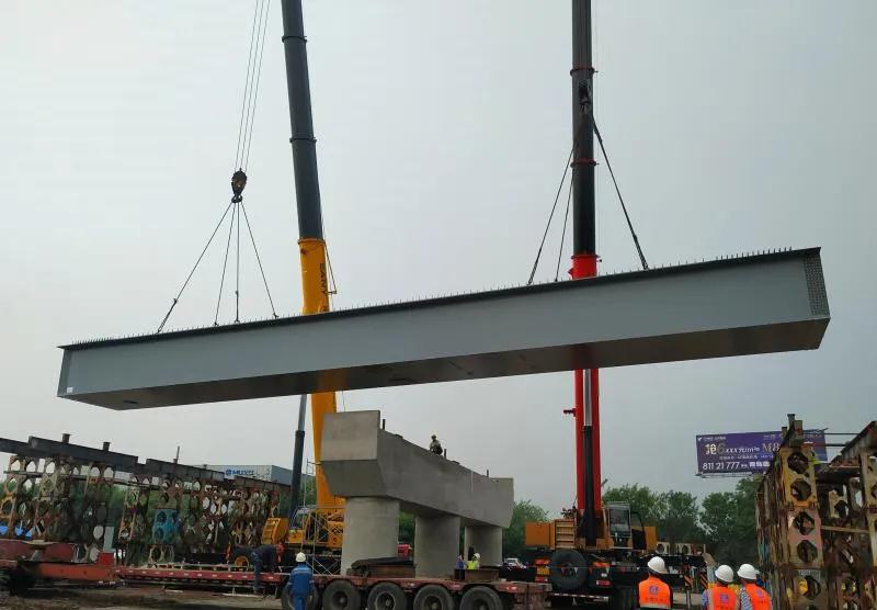 ????武船集團軌道交通公司與青島巨源市政工程有限公司簽訂的新機場高速(天康路以東段)橋鋼箱梁承包項目,總重約2500噸,計劃10月底完成安裝。