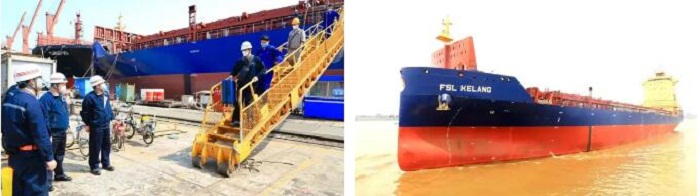 ?? H5647船是2150TEU(標(biāo)準(zhǔn)集裝箱)系列船的第三艘,總長179.4米,型寬30.95米,型深17.4米,滿載2150箱,設(shè)計(jì)吃水9米;配置了廢氣再循環(huán)(EGR)系統(tǒng)和脫硫系統(tǒng),可降低硫氮化合物的排放,滿足國際海事組織(IMO)Tier III 排放要求,是一艘綠色、環(huán)保的船舶。
