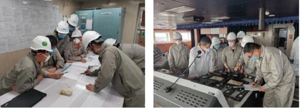????試航期間,滬東中華試航領導小組臨時黨支部與上海LNG技術部試航臨時黨支部,開展了“海上戰(zhàn)疫”共建活動,做細做實試航期間的疫情防控工作。