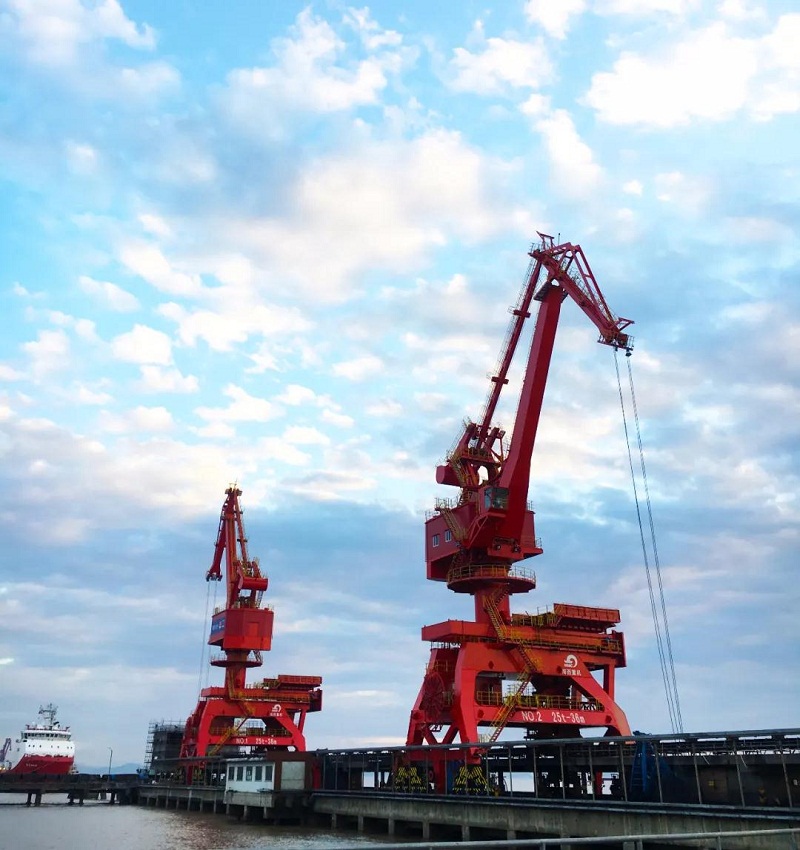 ????近日,武漢船機海西重機為寧波舟山港老塘山碼頭打造的2臺25T-36M四連桿帶斗門機順利交付。門機額定起重量25噸,工作幅度36米,額定工作效率800噸/時,主要用于煤炭和海沙的卸船作業(yè)。